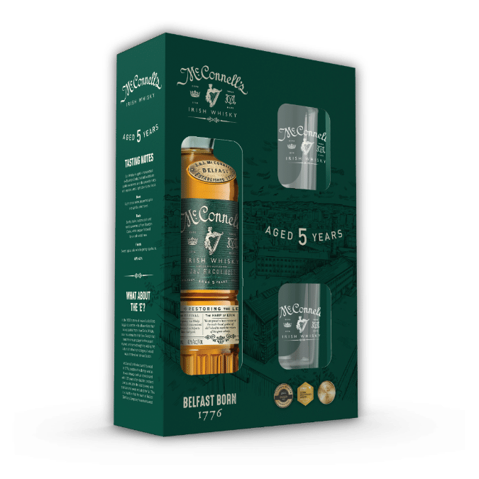 The perfect gift for whisky lovers, this McConnell’s 5 Year Old Glass Pack pairs the iconic 5 Year Old Signature Release with two branded tasting glasses.