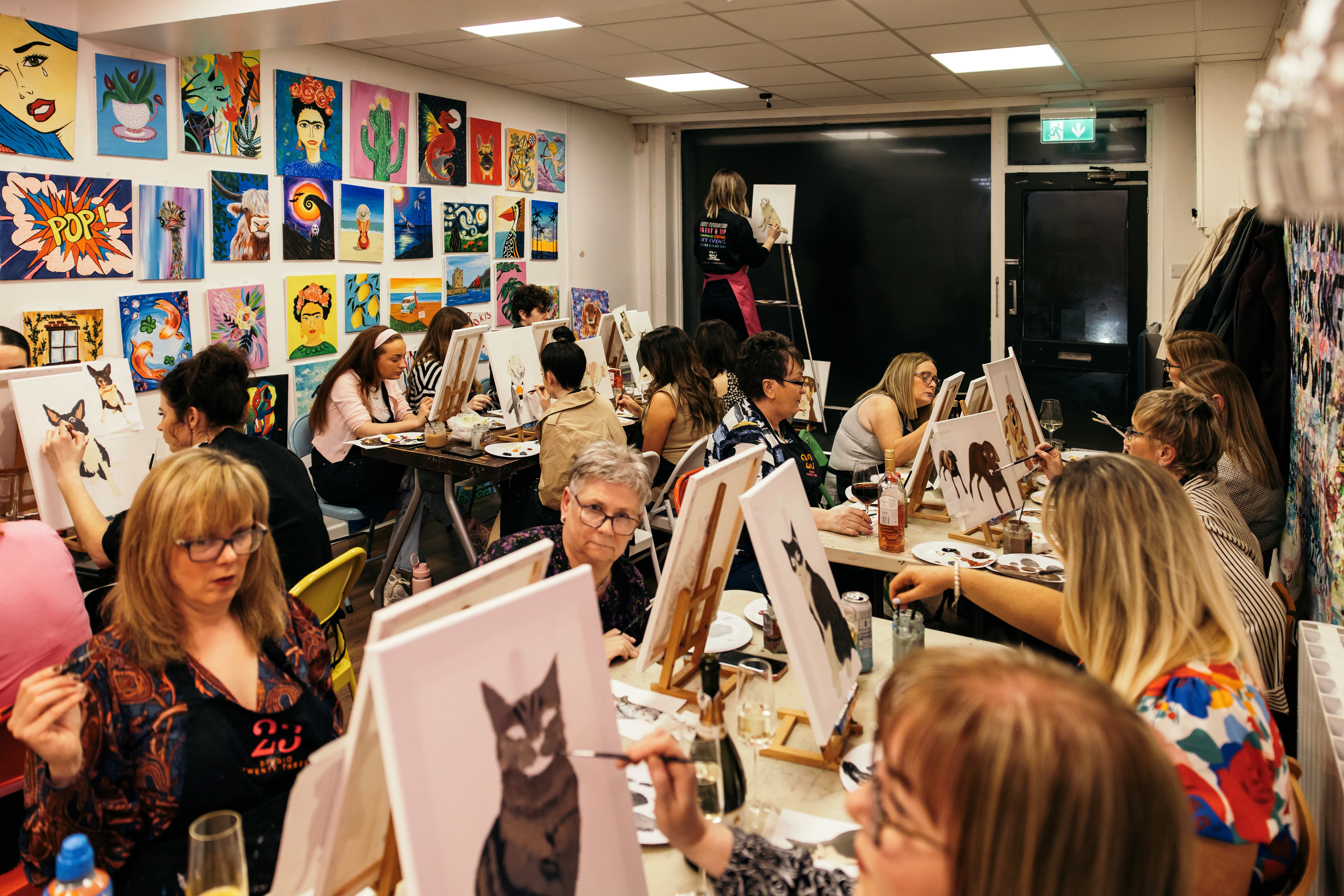 Set in a characterful space with comfortable seating and good lighting for painting. The bar serves McConnell’s whisky, cocktails, and soft drinks during the session.